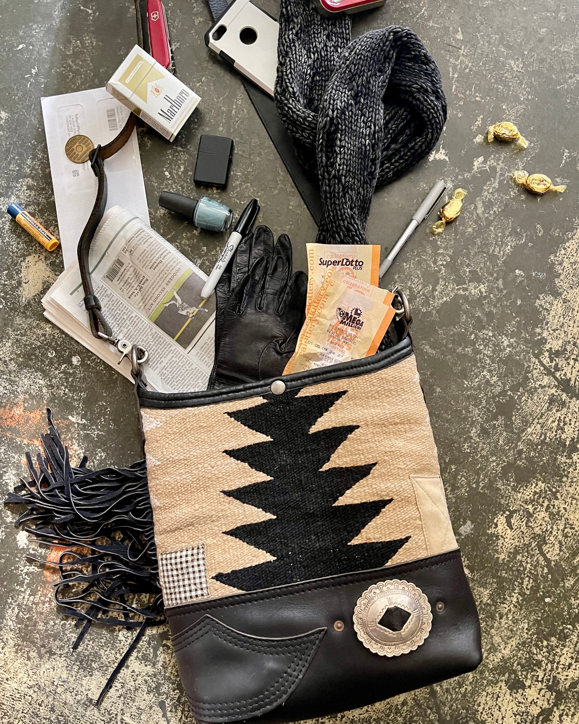 Bucket - Fringed Vintage Navajo x Leather - with Concho