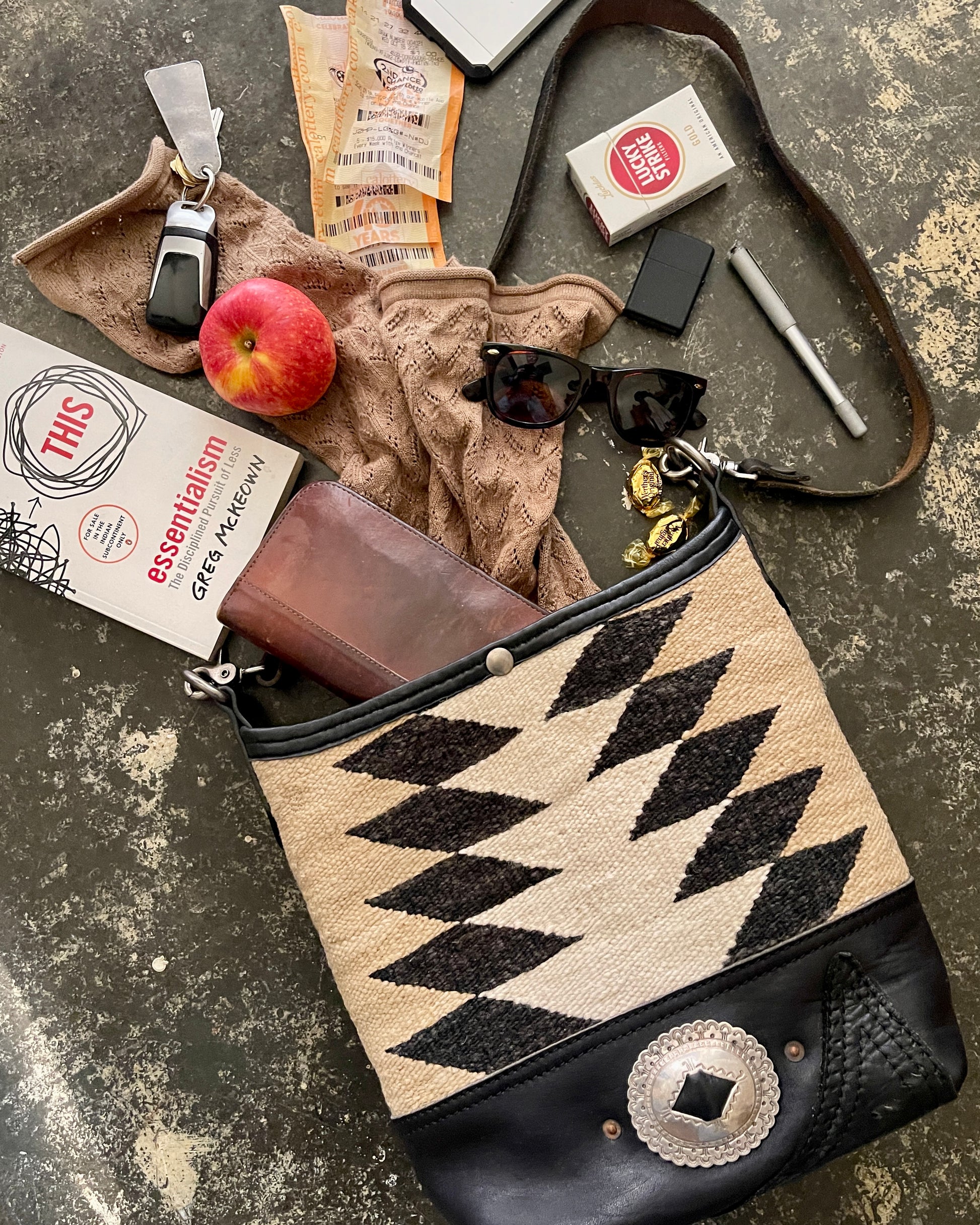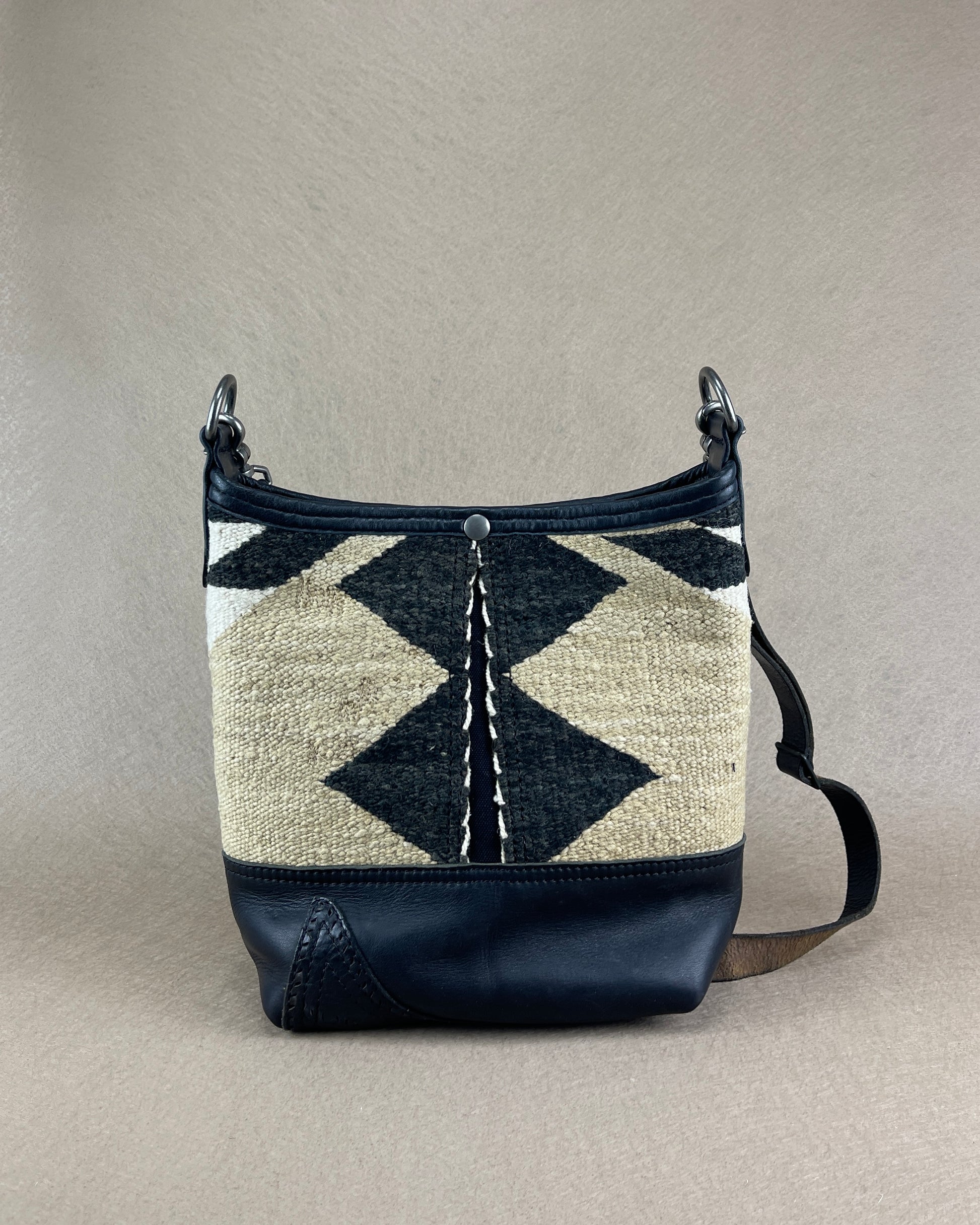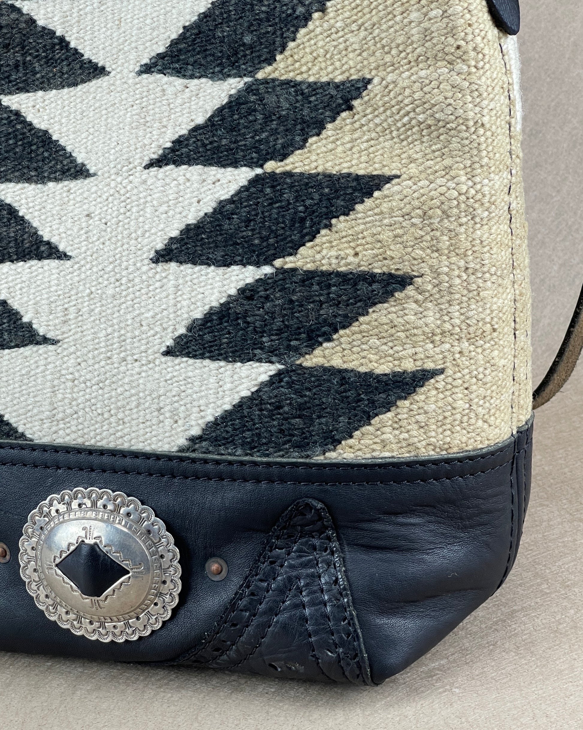 • Materials: Vintage Navajo buckskin, cream and cinder weaving, black leather base