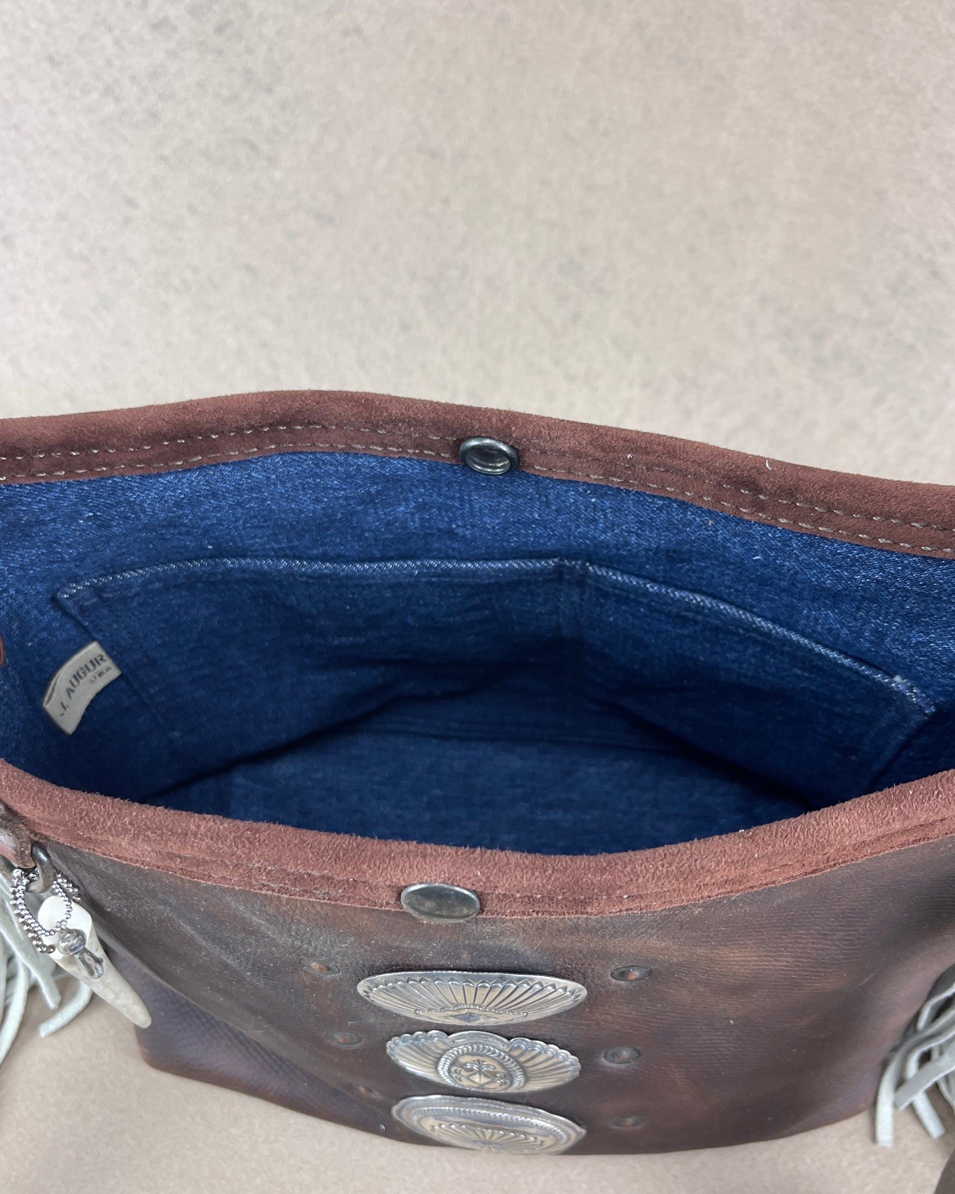 Mini Bucket - Vintage Leather - Fringed with Conchos