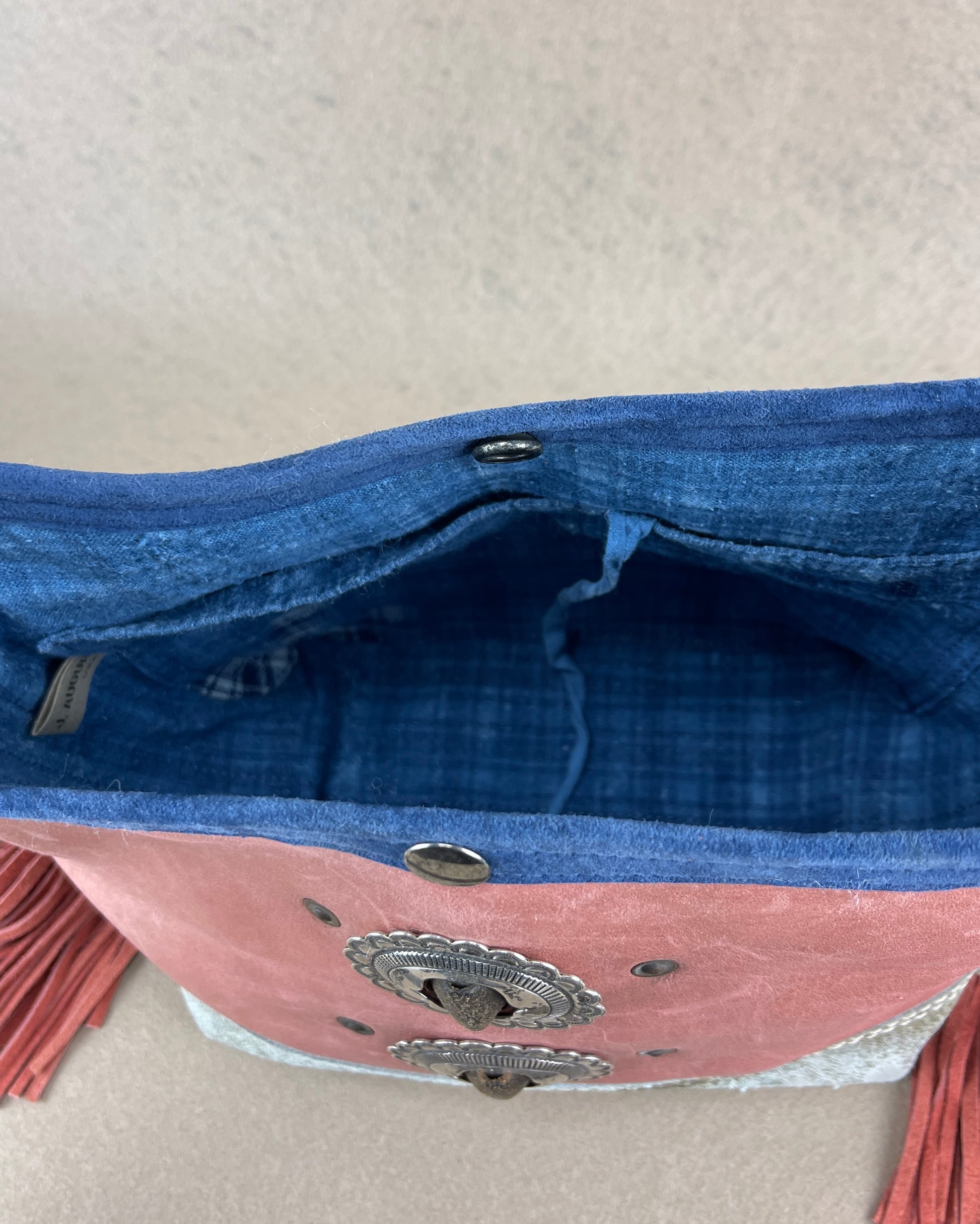 • Features: Suede fringe, two vintage 2¼" oval stamped sterling silver conchos, deeper silhouette for added versatility