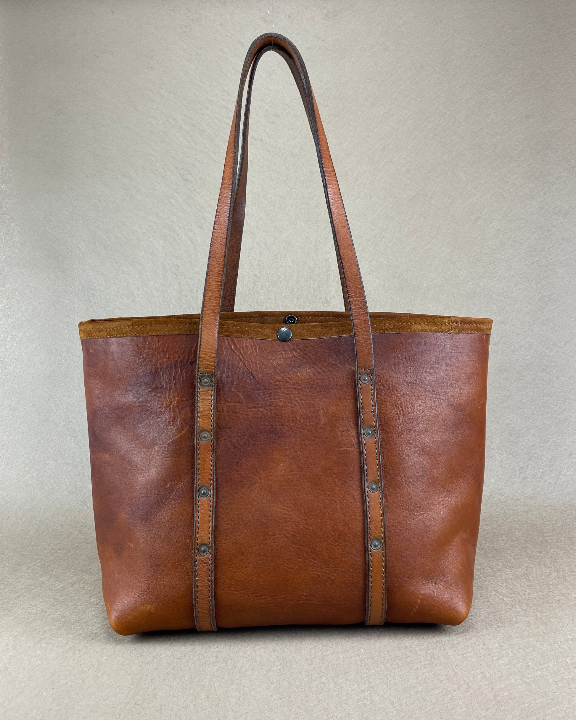 • Straps: Vintage narrow saddle leather handles, reinforced with copper/burr rivets, 11" drop